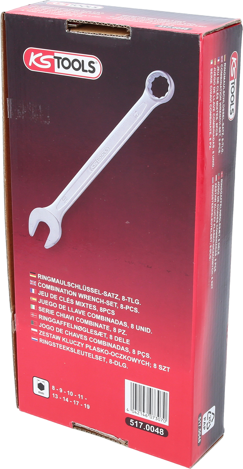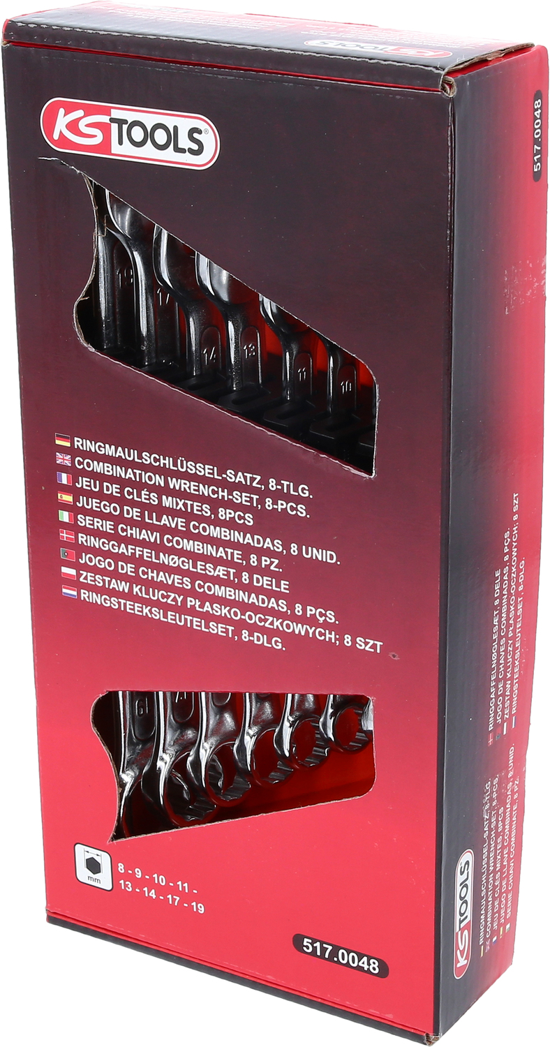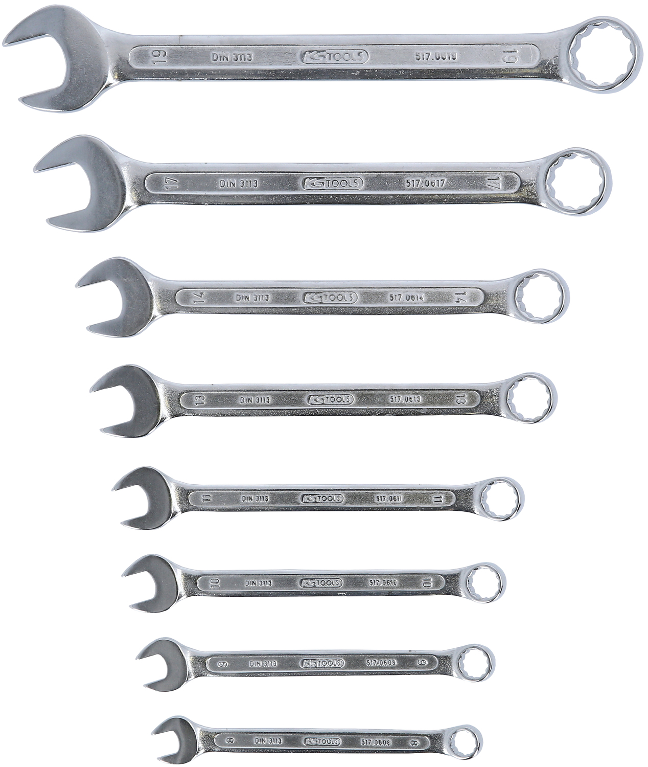 Kombinēto uzgriežņu atslēgu komplekts, ieliektas, 8-daļīgs, 8-19mm