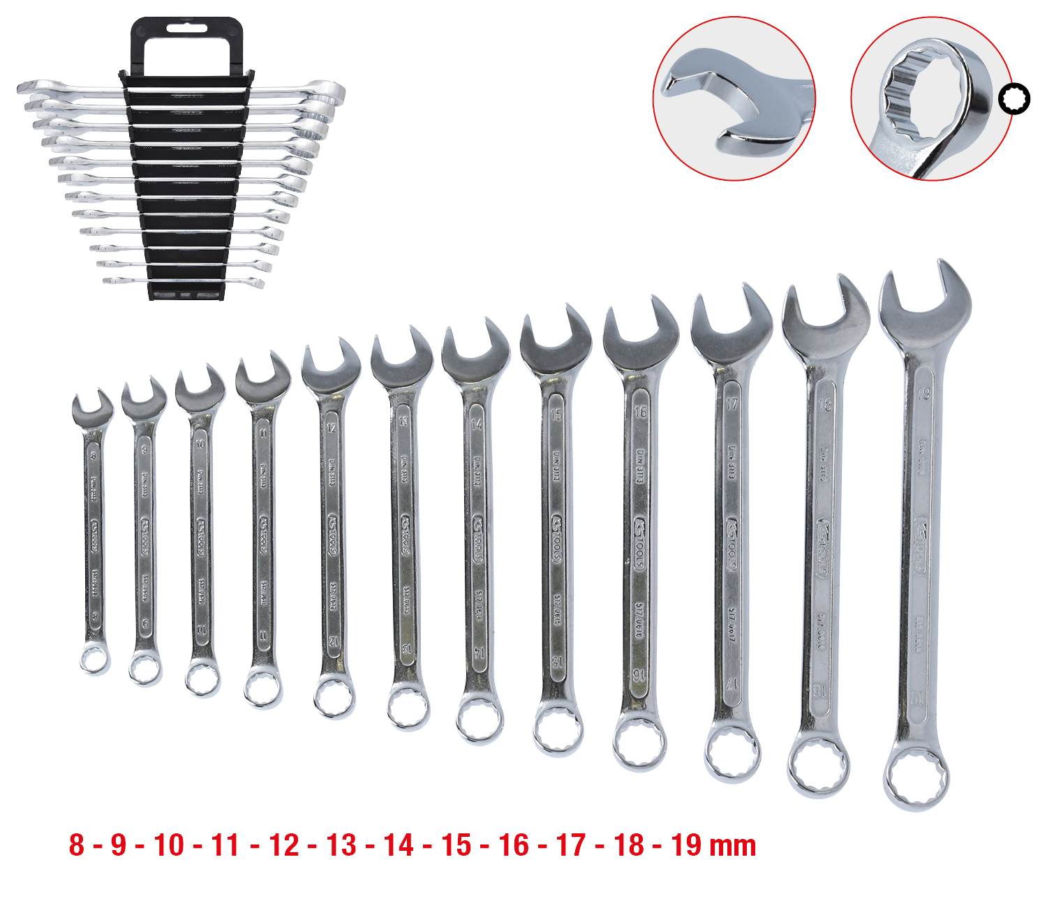 Kombinēto uzgriežņu atslēgu komplekts, ieliektas, 12-daļīgs, 8-19mm