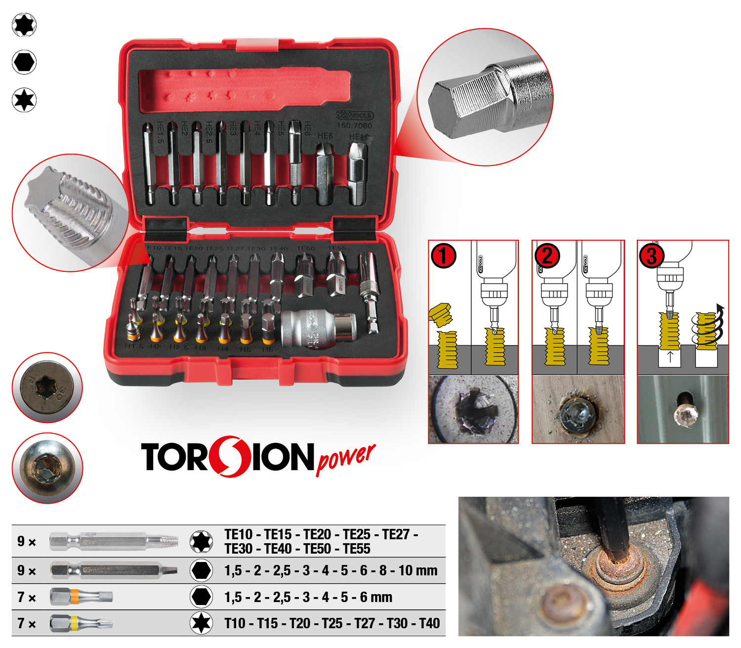 - Including TORSIONpower bits for Torx and hexagon socket screws