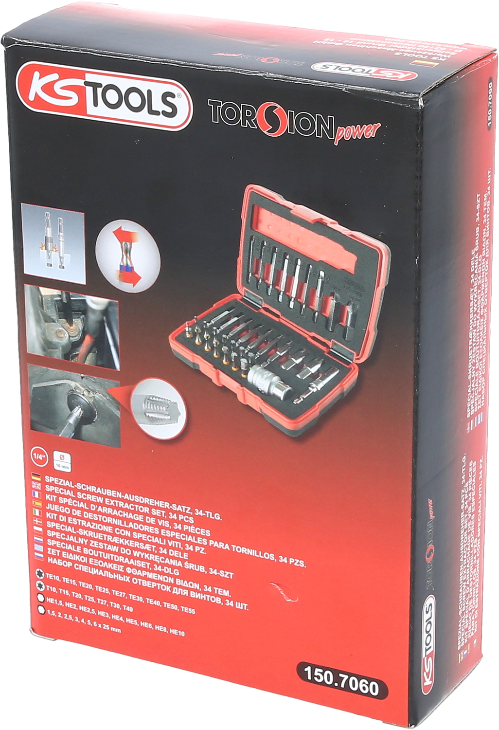 1/4" + 10 mm Torx un iekšējā seškanša skrūvju izskrūvēšanas komplekts, 34-daļīgs