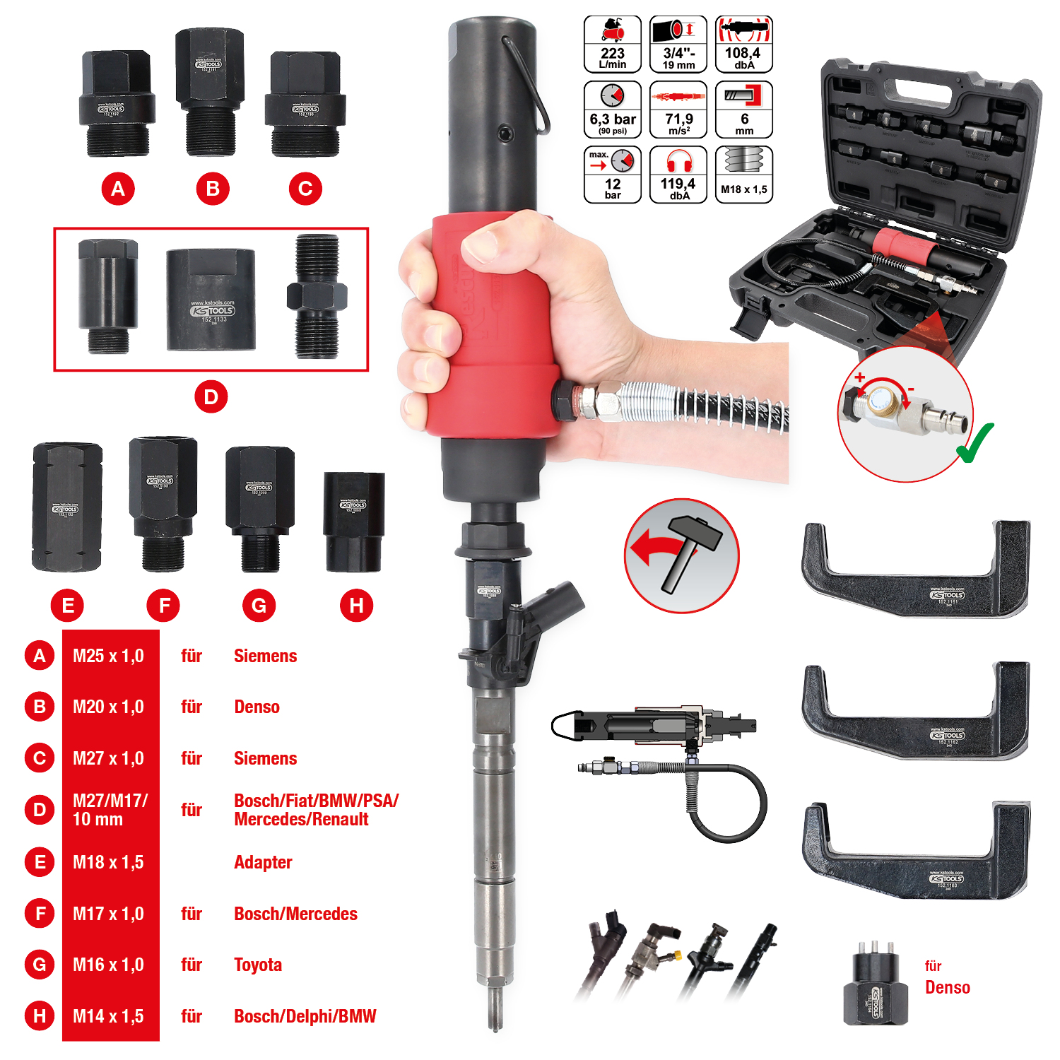 - naudojama išmontuojant užstrigusius variklio cilindrų bloko inžektorius