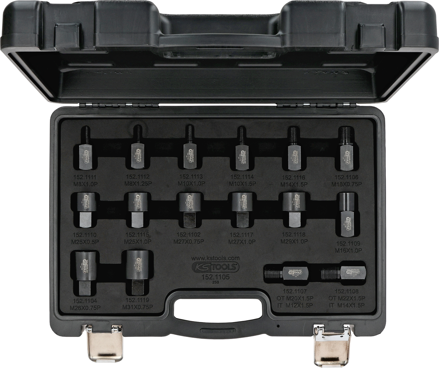 Ieskrūvējamu adapteru komplekts inžektoru izvilcējiem, 16 instr.