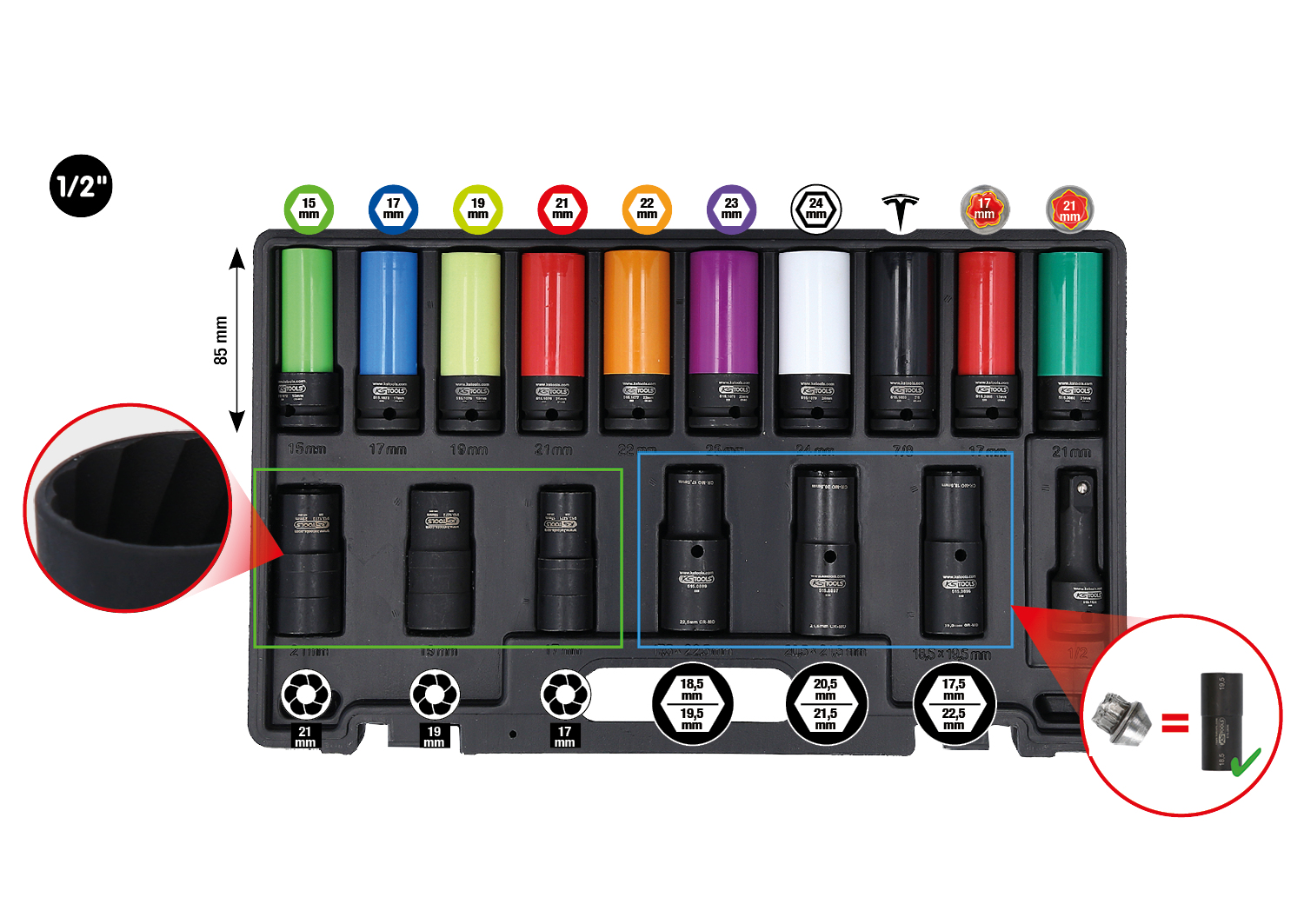 1/2" MASTER- specialių pavaros galinių galvučių komplektas ratų varžtams, 17 dalių
