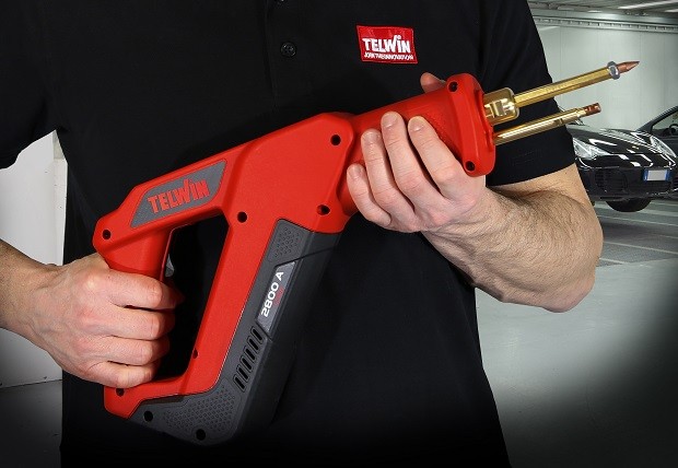 BATTERY PULLER is the new lithium battery spotter, designed and patented by Telwin, suitable for all straightening processes of steel sheets. Free of cables, handy and powerful it is the indispensable