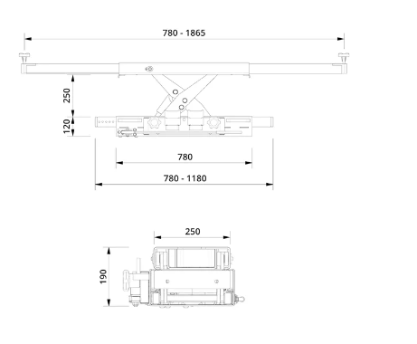 Viršējais atbalsts gali būti pagarinātas līdz 1865 mm