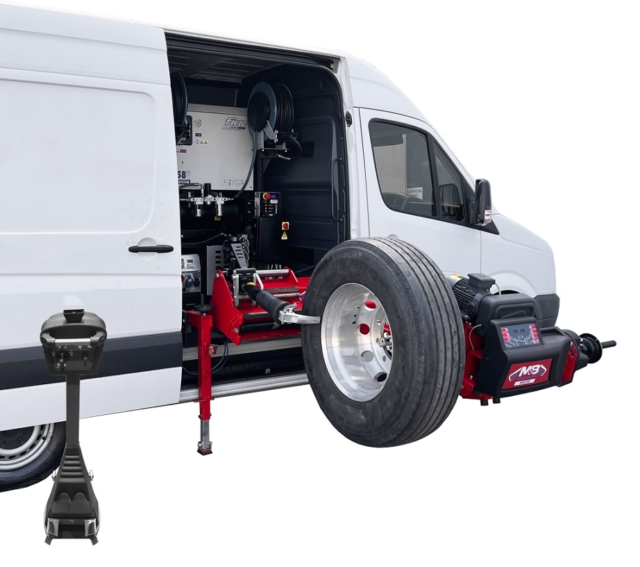 Elektrohidraulinė padangų montavimo įranga, skirta mobiliam serviso darbui su krovininio automobilio ir autobuso ratlankiais iki 26 colių dydžio. Visada pasiruošusi darbo sistema: dėka šiai sistemai, padangų montavimo įranga visada veikia perfekciniame padėtyje, nesugadinant padangos ir/ar ratlanko.
