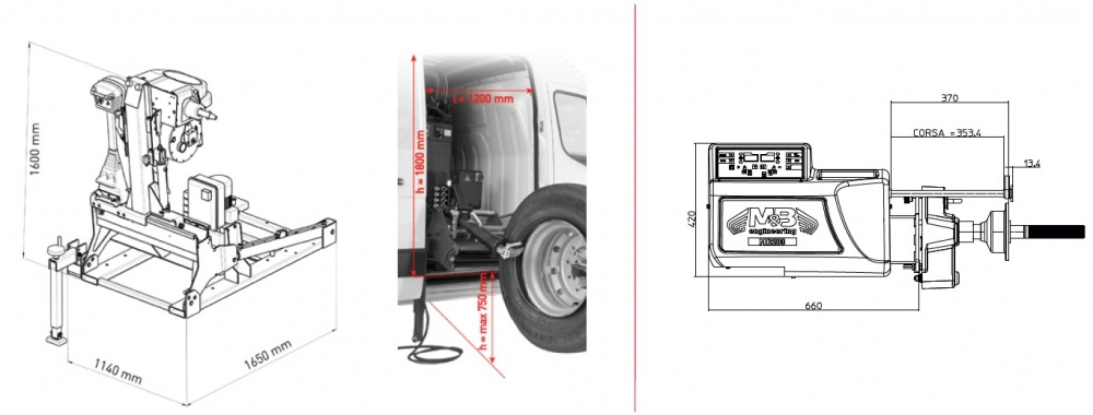 Greitas padangų demontavimo ir montavimo LL sistema (be svoriaus) su kabliu, ypač plačiems ratlankiams. Laukimo režimas: elektromotoras automatiškai sustabdo veikimą, kai įranga nenaudojama, taip sumažindamas energijos sąnaudas ir triukšmą. Avarinis rankinis siurblys: ši sistema užtikrina, kad darbinė įranga sugrįžta į furgoną elektrinės/hidraulinės sistemos sutrikimo atveju. Saugos mikros jungikliai: jie apsaugo nuo bet kokių įrangos ir furgono pažeidimų.