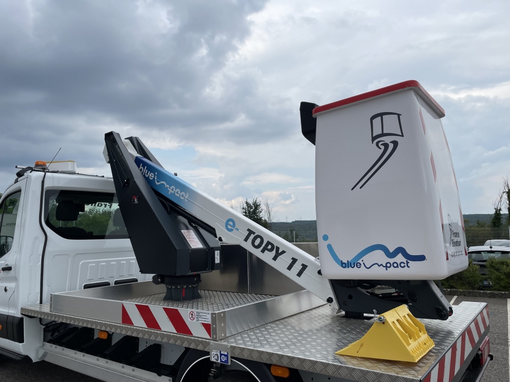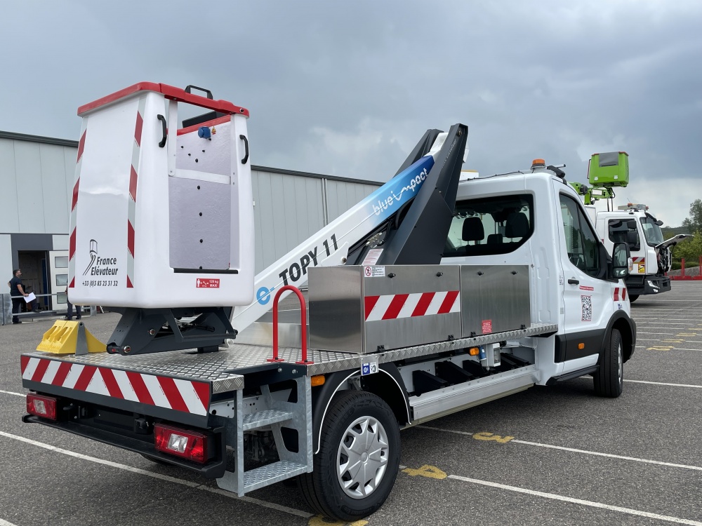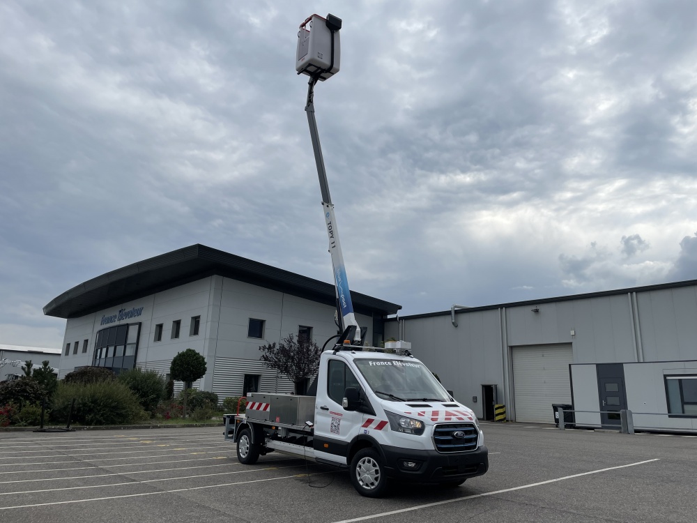 Asmeninio kilnojamojo kranas e-TOPY 11 ant Ford Transit elektromobilių šasijos
