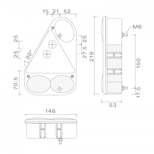 Užpakalinis dešinysis prožektorius EARPOINT III 12V. Matmenys: 219x146x53 mm, atstumas tarp tvirtinimo vietų 150 mm. Prožektoriui yra 4 funkcijos: galiniai žibintuvėliai, stabdžiai, atgalinis bėgių judėjimas ir posūkis. Prožektorius turi 5PIN bajonetą ir yra pažymėtas E ženklu.