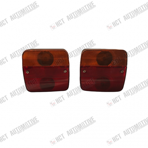 Komplekts sastāv no diviem 12V lukturiem. Izmēri:104x98x50 mm, attālums starp stiprinājuma vietām 55 mm. Lukturiem ir 4 funkcijas: aizmugurējie gabarīti, bremzes, numura apgaismojums un pagrieziens. Lukturi ir ar spuldzītēm, bez vada un tiem ir E marķējums.Tos var uzstādīt gan horizontāli, gan vertikāli atkarībā no numura zīmes atrašanās vietas.