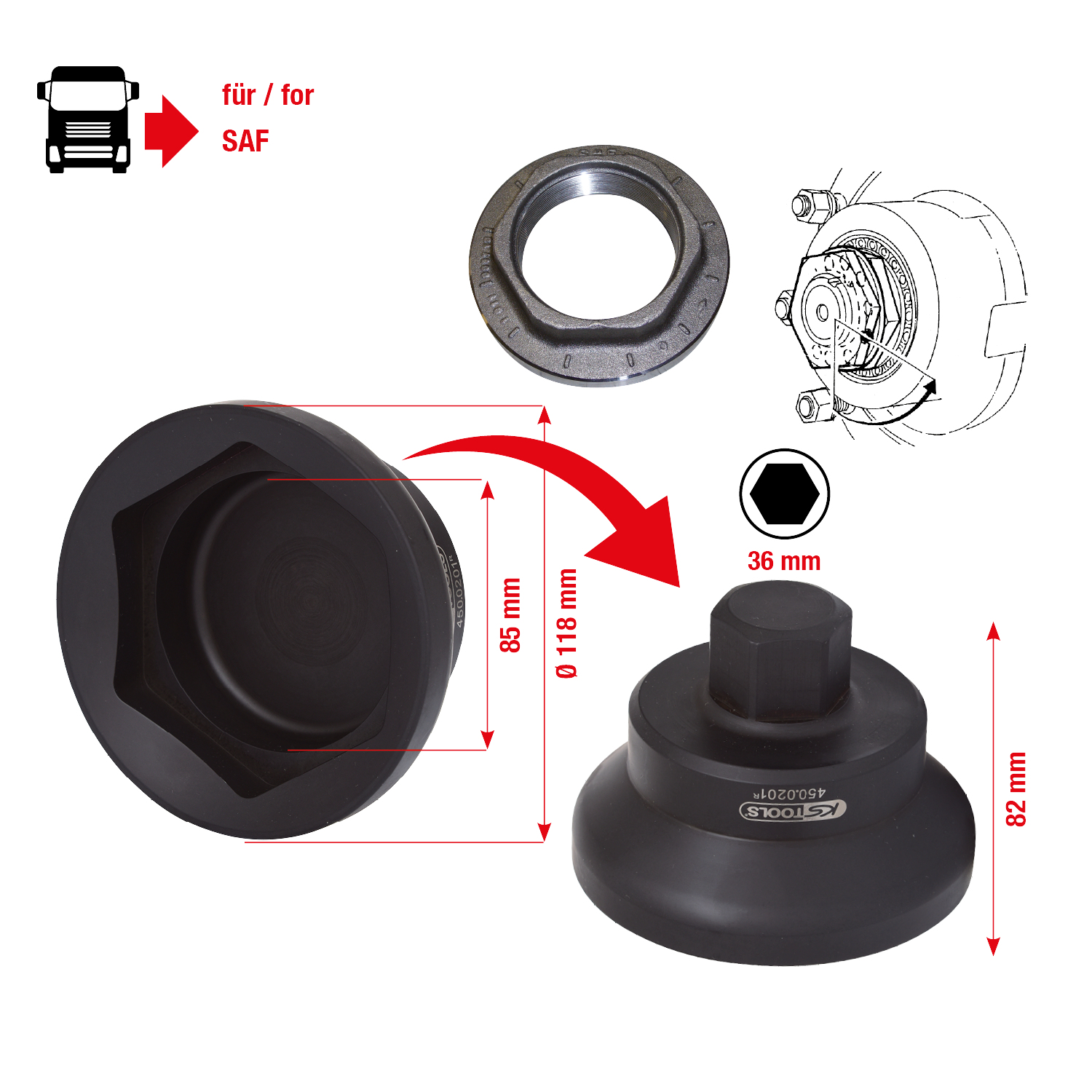 Ключ для осевых гакек для SAF 85 мм, Ø 118mm