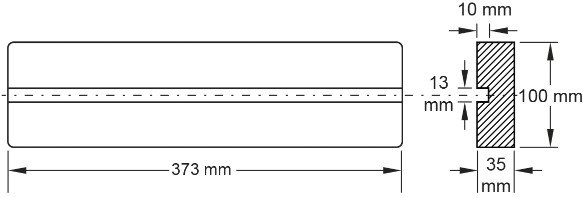 Резиновая подкладка 09 с пазами для подъемников, 373 x 100 x 35 мм