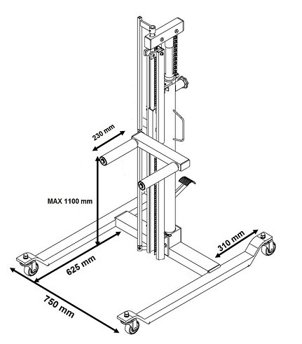 Гидравлический подъемник позволяет легко поднимать / опускать колесо автомобиля во время его монтажа / демонтажа. Ножная педаль используется для подъема.