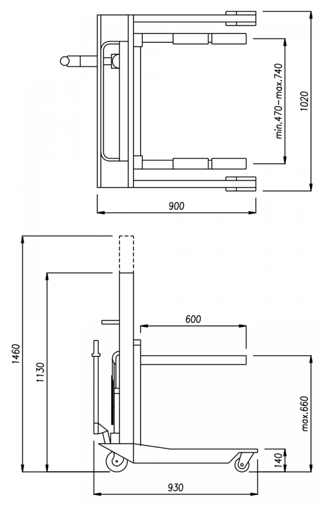 Расстояние между роликами для подъёма колеса: мин. 470 мм / макс. 740 мм