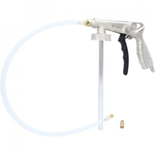 Пневматический пистолет для антикоррозионной защиты днища Brilliant Tools BT161104 предназначен для прямого навинчивания на обычные жестяные или пластиковые бутыли и картриджи. Благодаря гибкому шлангу можно обрабатывать труднодоступные места на корпусе. Высококачественное исполнение пистолета обеспечивает его долгий срок службы при ежедневном применении в мастерской.