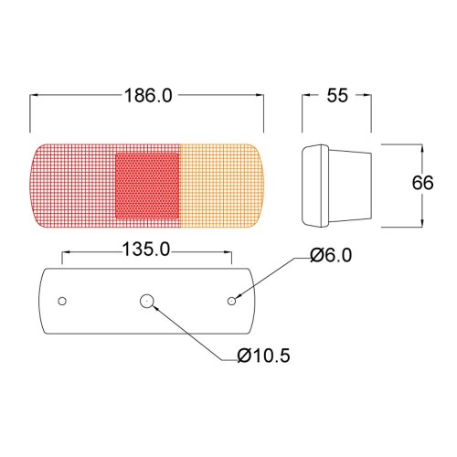 Задний правый фонарь BRITAX 12V. Размеры: 186x66x55 мм, расстояние между местами крепления 135 мм. У фонаря 3 функции: задние габариты, тормоза и повороты. Фонарь с 2,5 м проводом и маркировкой E. Также устанавливается на прицепы Ifor Williams Trailers.